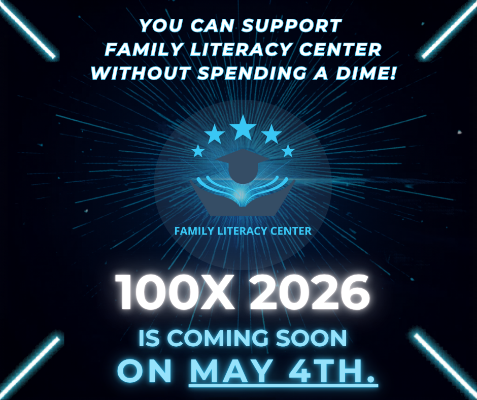Want to make a difference for the Family Literacy Center in under a minute? The Family Literacy Center’s HundredX fundraiser launches May 4th, and each quick survey you complete helps change lives through adult education. It’s fast, easy, and adds up quickly! One person can generate $1.60 per survey up to 75 surveys. That’s $120 raised at no cost to you! Details coming soon of how to sign up!